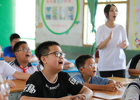 支教队员为学生们上“音暖童心”音乐课